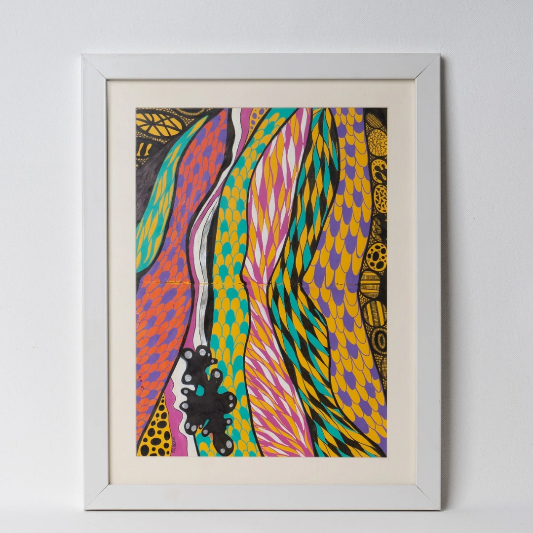 A vibrant ode to the kaleidoscopic beauty of marine life, this artwork by Sheel Parekh dances with the lively hues of coral reefs and exotic underwater creatures. Bold pinks, yellows, and teals ripple across the canvas, creating a rhythmic flow that mirrors the pulse of the ocean. Intricate patterns evoke scales, shells, and sea flora, drawing the viewer into a playful yet mesmerizing underwater world. As part of the marine-inspired series, this piece captures the energy, diversity, and brilliance of life beneath the waves, celebrating the untamed beauty that thrives in the ocean’s depths.