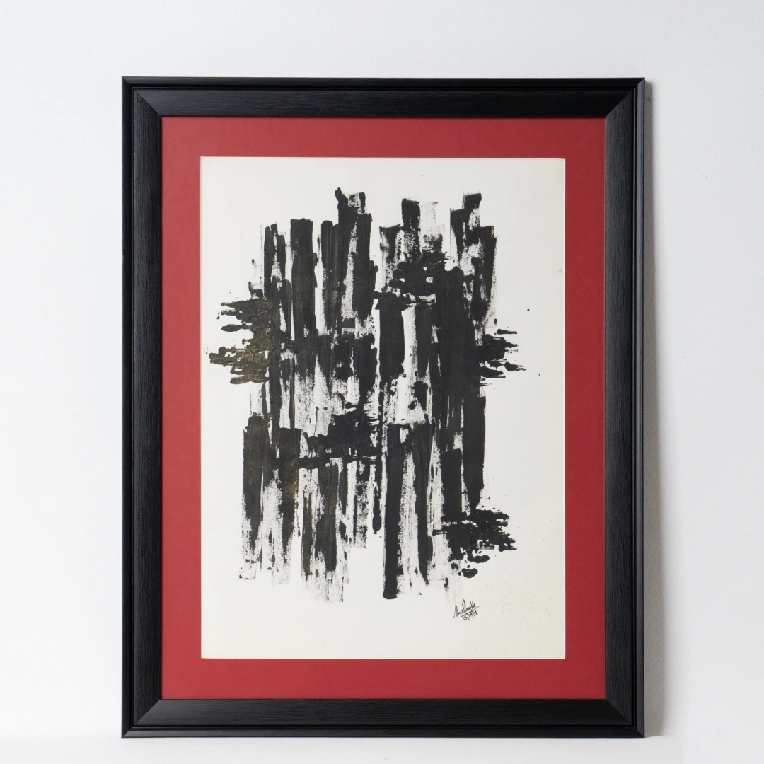 A poetic reflection on impermanence, Fading Forests by Sheel Parekh captures the quiet disappearance of nature through bold, abstract strokes. The vertical brushwork evokes the silhouettes of trees, slowly dissolving into the canvas as if consumed by time and memory. This monochrome composition balances strength with fragility, inviting the viewer to contemplate the delicate relationship between creation and erosion. A minimalist yet deeply expressive piece, Fading Forests is a visual meditation on nature’s fleeting beauty.